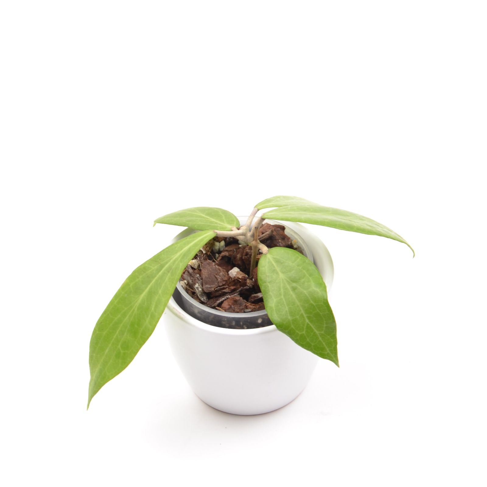 Hoya camphorifolia besticht durch ihre spitz zulaufenden, ovalen hellgrünen Blätter mit deutlich sichtbarer Blattnervatur. Das Neuaustrieb zeigt sich in einem beeindruckenden Purpur-Rot. Die Pflanze eignet sich wunderbar zum Klettern oder Hängen.