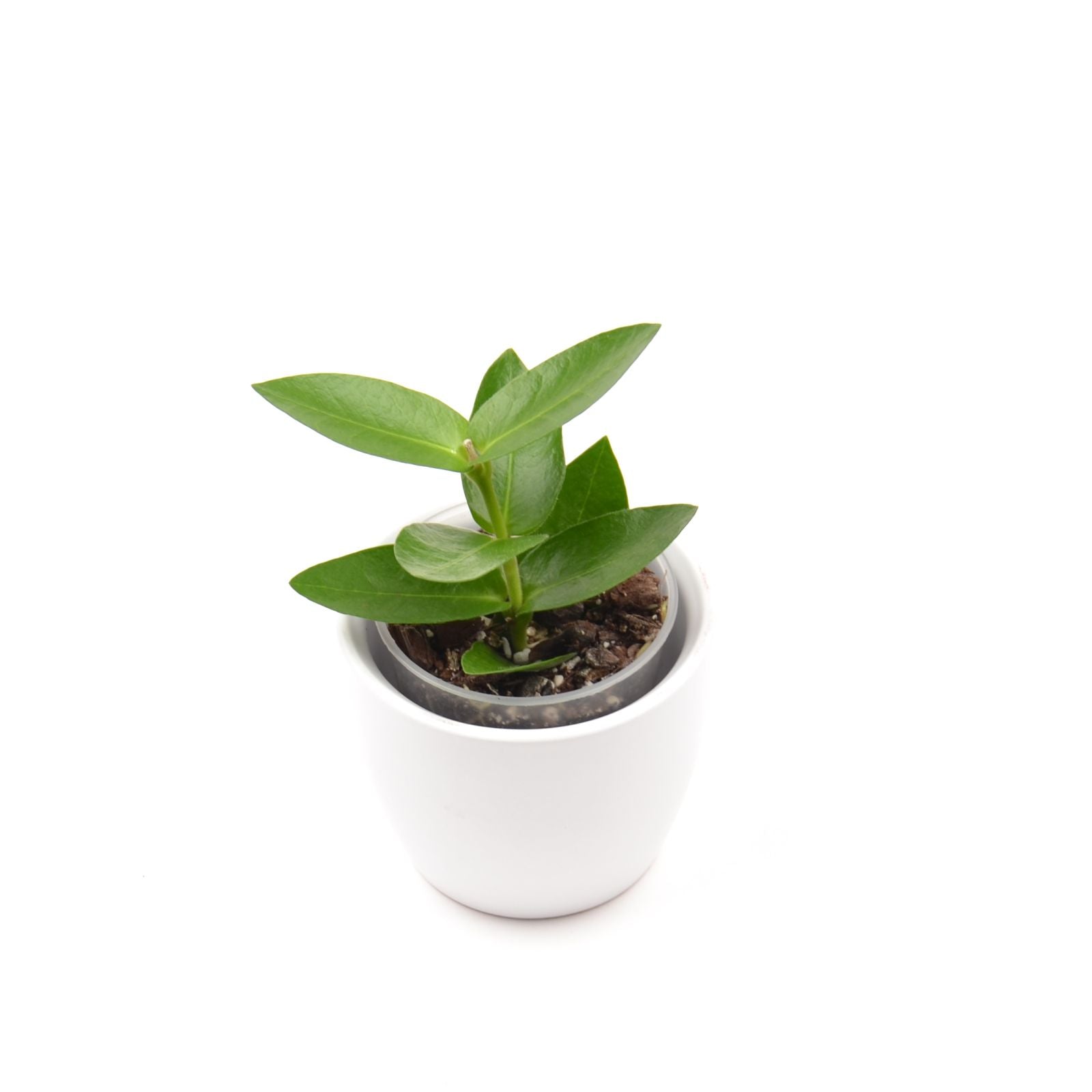 Die Hoya densifolia ist eine dekorative, pflegeleichte Zimmerpflanze mit kräftigen, ledrigen Blättern in sattem Grün. Sie wächst buschig und aufrecht, wodurch sie sich ideal für Rundbögen oder Kletterhilfen eignet. Mit ihrem dichten, strukturierten Wuchs bringt sie frisches Grün und natürliche Eleganz in jeden Raum.