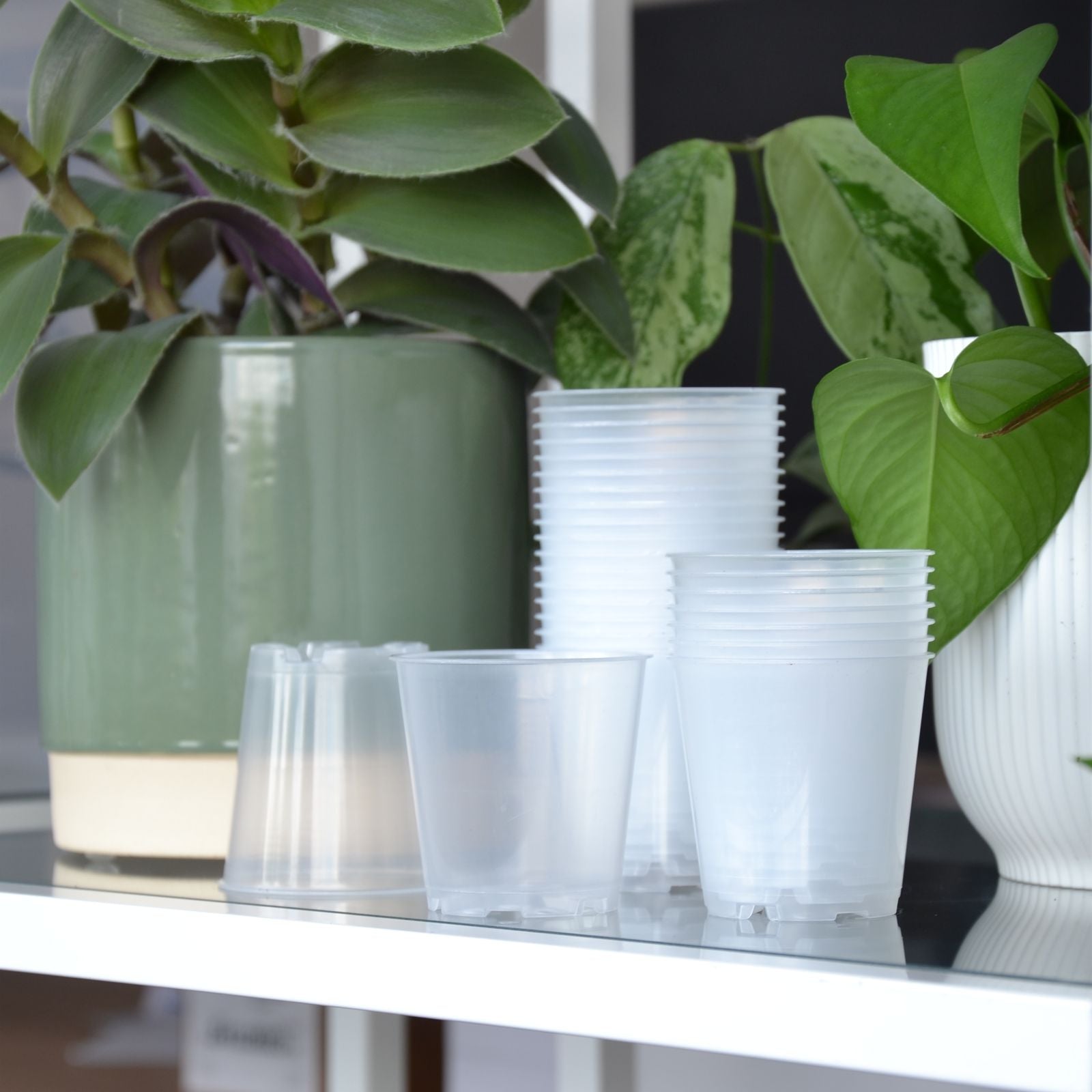 Diese transparenten Töpfe aus stabilem Kunststoff sind ideal, wenn du das Wurzelwachstum deiner Pflanzen im Blick behalten möchtest. Besonders bei Stecklingen und Jungpflanzen hilft dir der klare Topf dabei, schnell zu erkennen, ob sich bereits kräftige Wurzeln gebildet haben.
